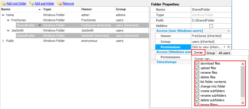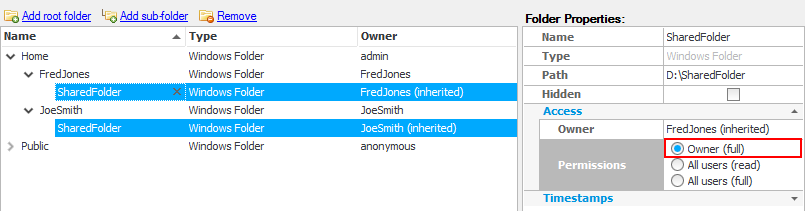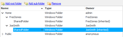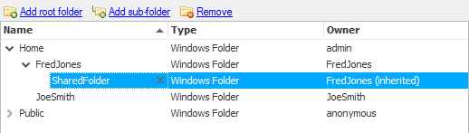 Select the 'FredJones' user from the list then click 'Add sub-folder'.