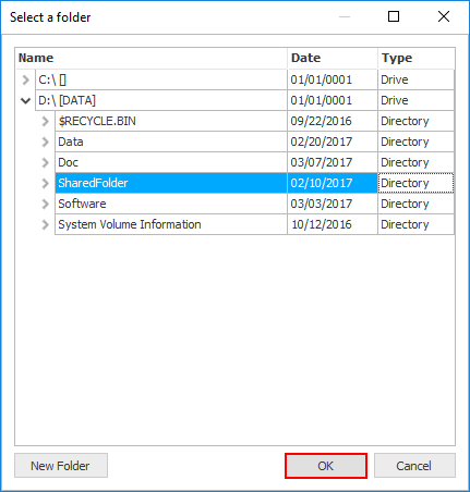 Select a folder which will be shared among the users, e.g. 'SharedFolder'.